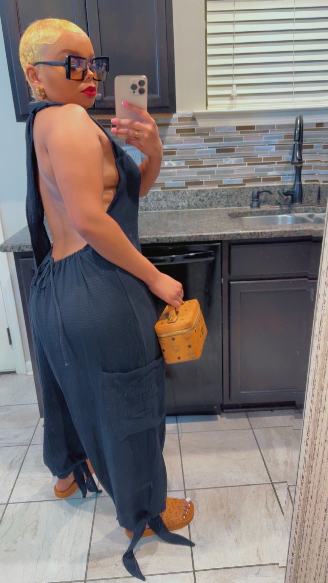 OVERSIZED JUMPSUIT W/DRAWSTRING BACK & ANKLE BOWS