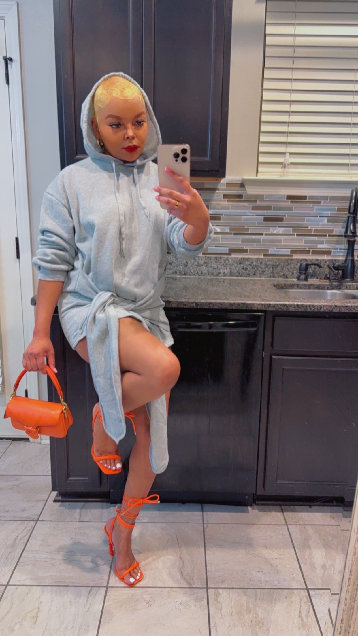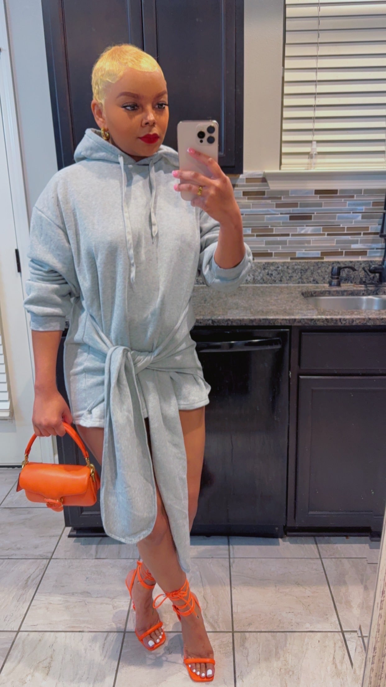 OVERSIZED MINI HOODED DRESS/STRETCHY/(SiZE UP FOR LENGHT)