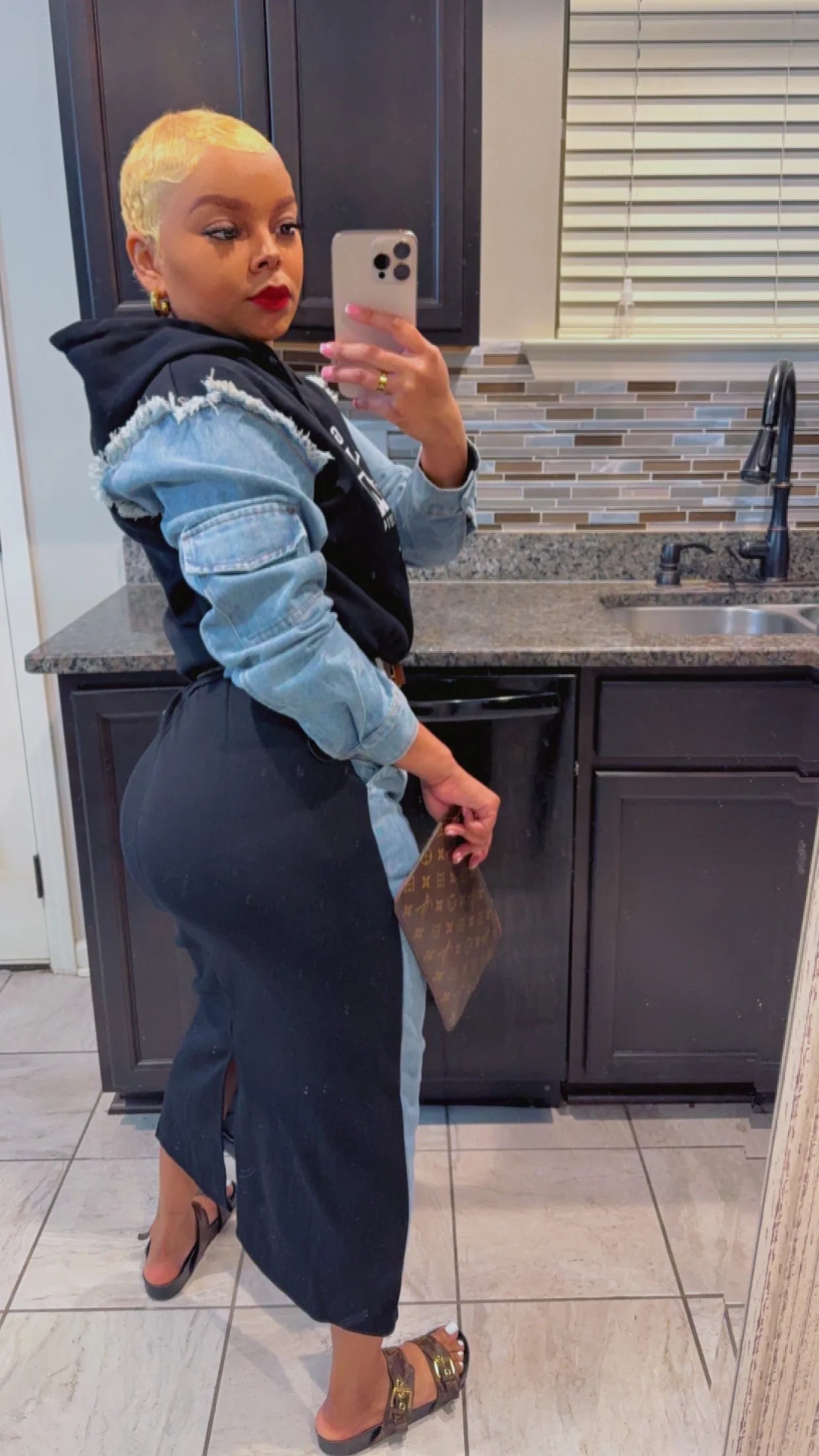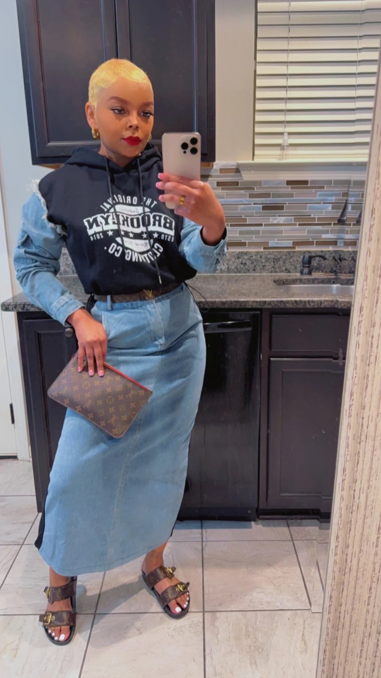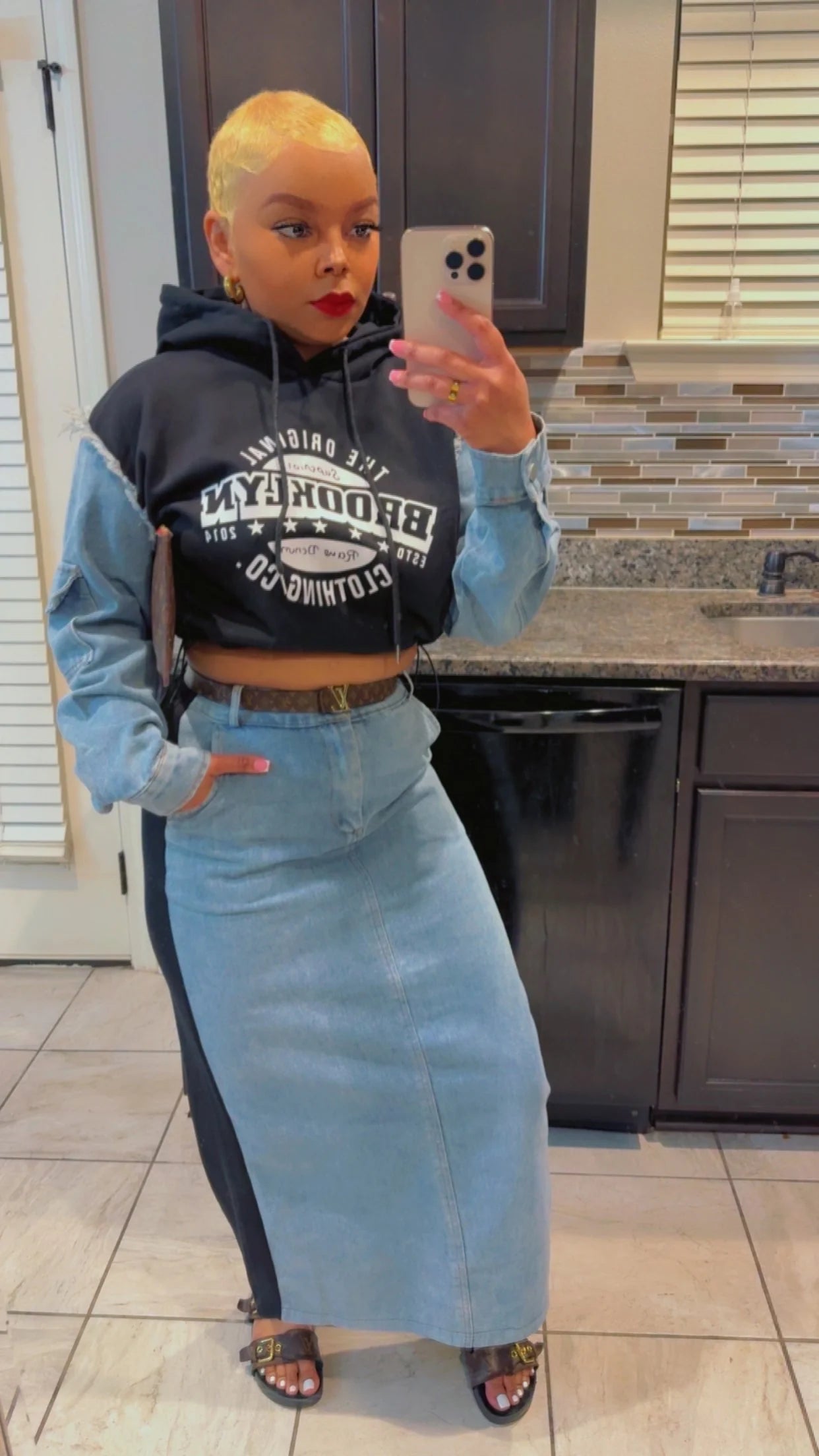 2TONE DENIM/COTTON SET/HIGHWAIST/HOODIE