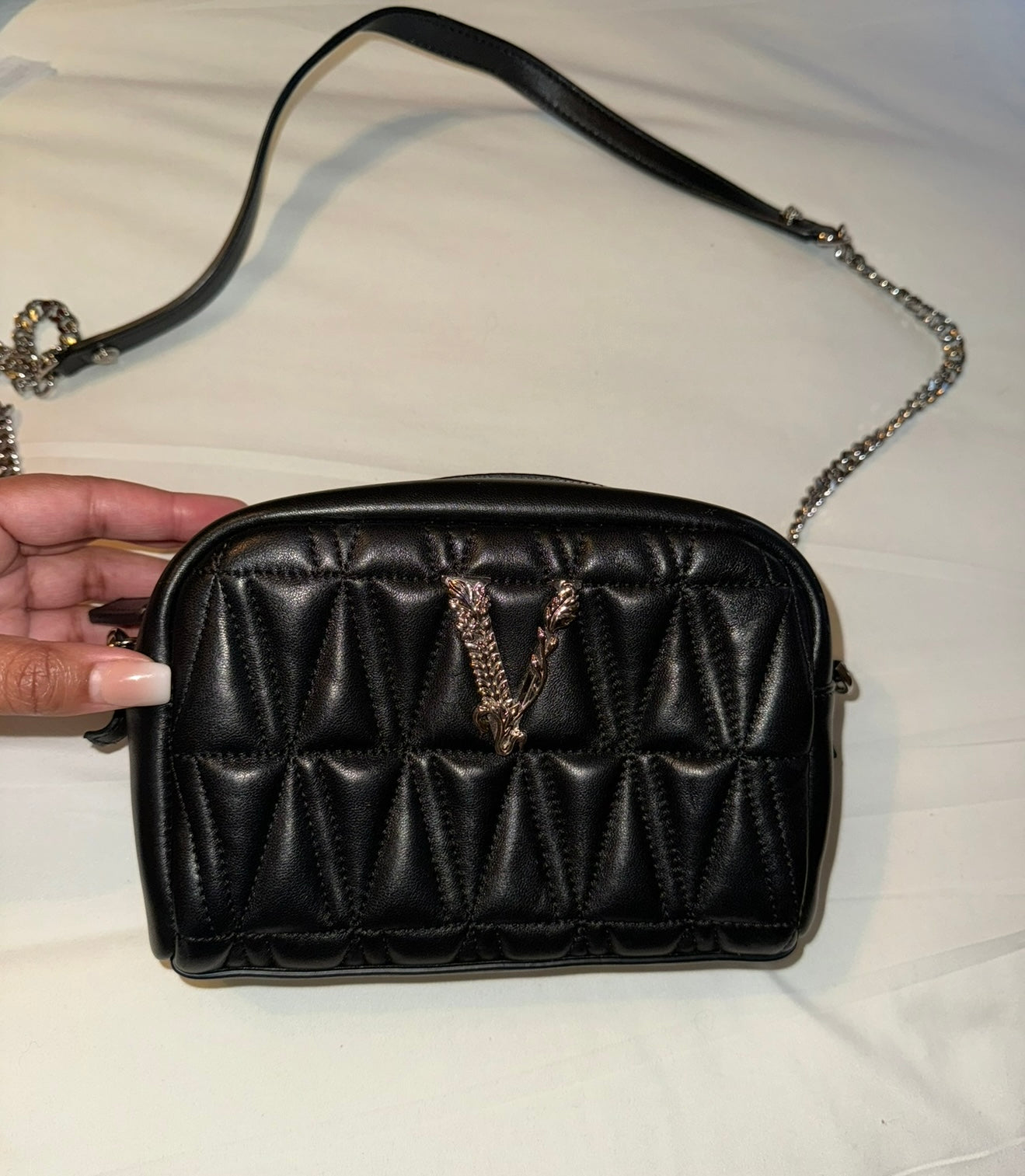 Versace Virtus Quilted Leather Camera Style Bag